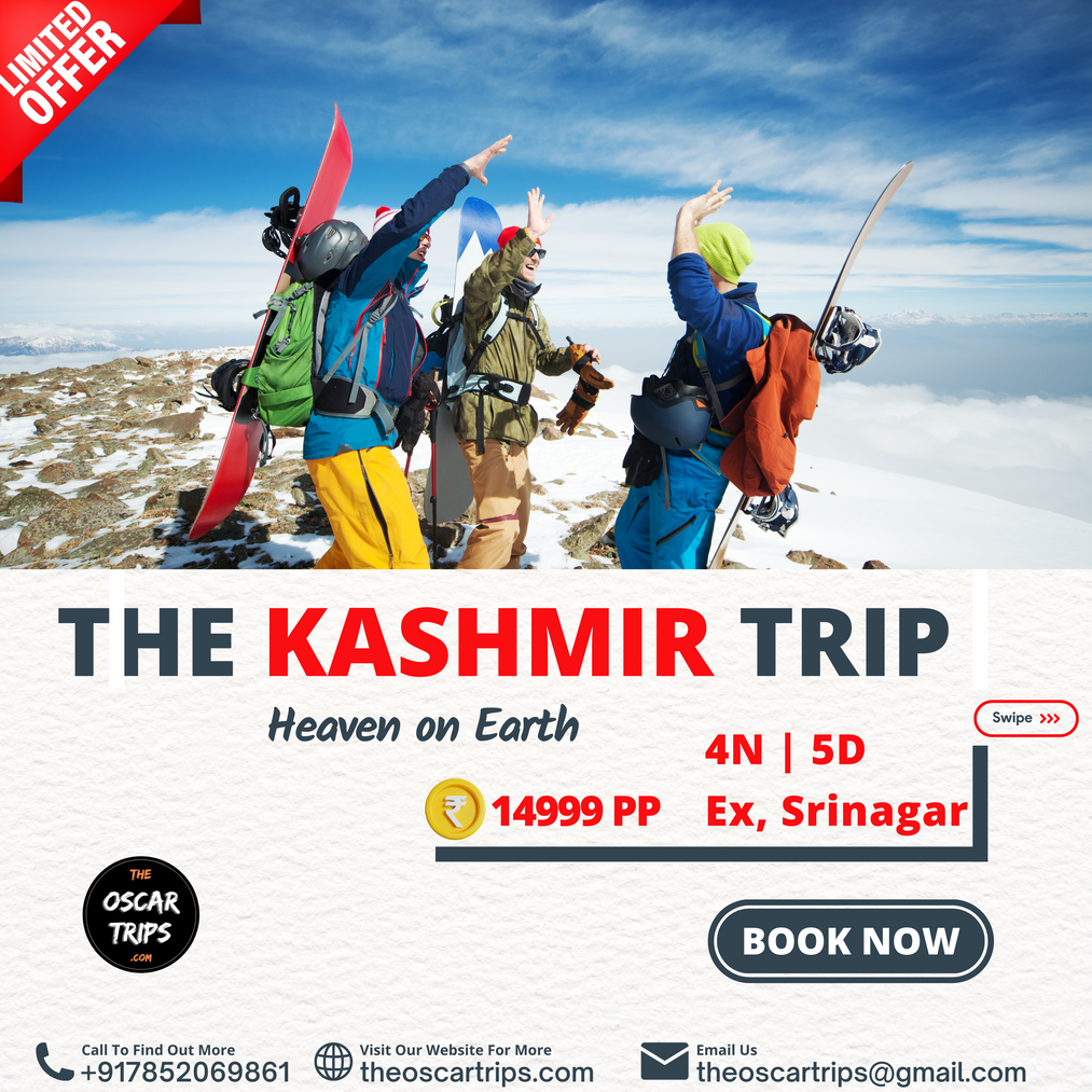 Client told me that we have a travelling agency. create an advertisement for tour in Kashmir. this tour is of 5 days and four nights. he told me that we are going to send our costumes these place in Kashmir